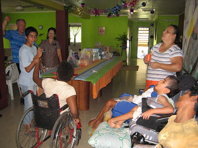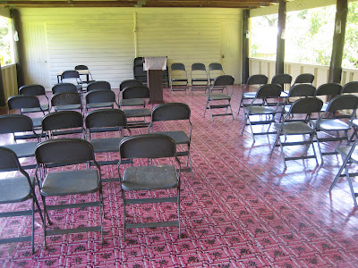 Here is the inside of the building. Paul was really impressed with how neat and clean the members keep it here. This unit has about 35-40 members in attendance each Sunday which is another very impressive fact about this Branch! Behind that white wall that is at the front of the chapel are two other small rooms. One is the Branch President's office and the other one is the "bedroom" for the missionaries when they come to work in this area.