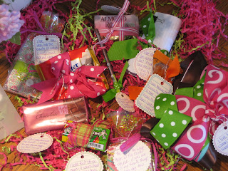 Honestly there is nothing much funner than getting a surprise package in the mail!!! Actually the fact that I got a package wasn't a surprise since I had signed up to participate in a "My Favorite Things" swap but the contents of the package were a total surprise! You can see what a unique assortment of treasures this quirky little box contains. I definately got paired up with an over-achiever since the perimeters of the swap stipulated that you send 3 of your favorite items... I was so excited as I dug deeper into the pink and green paper crinkles and kept pulling out fun items. In case you can't tell from my photo, here is what my package contained: a HUGE bundle of grogrein ribbons in a rainbow of colors; seriously, yards and yards of ribbon, a small carry-with-you notepad for sudden spurts of inspiration (Vera Bradley) , a wallet-like luggage tag (Vera Bradley also) -- so I can spot my suitcase instantly from all the others that look just like it--, a nice shade of lip liner that I am excited to give it a try, and in the candy department (which was a big hit with me as well) almond roca, Riter chocolate bar and another chocolate bar from Trader Joe's plus a printout from her blog where she told all about Trader Joe's and since we don't have that store here in Utah I enjoyed her informative narritive, plus she included her favorite fruit stripe gum (my grandkids will love) and some very special jelly beans (but that is a secret so shhhhhh) and finally a book marker quote from Eleanor Roosevelt. Okay, I think that was a little more than 3 items but who's counting --- not me! Thank you so much my dear new Swap friend, Kristi. If you think this package was fun and informative, you need to check out her blog. In honor of Kristi, I think I'll finish this post in pink. So once again, thank you, thank you, thank you... you made my day!!